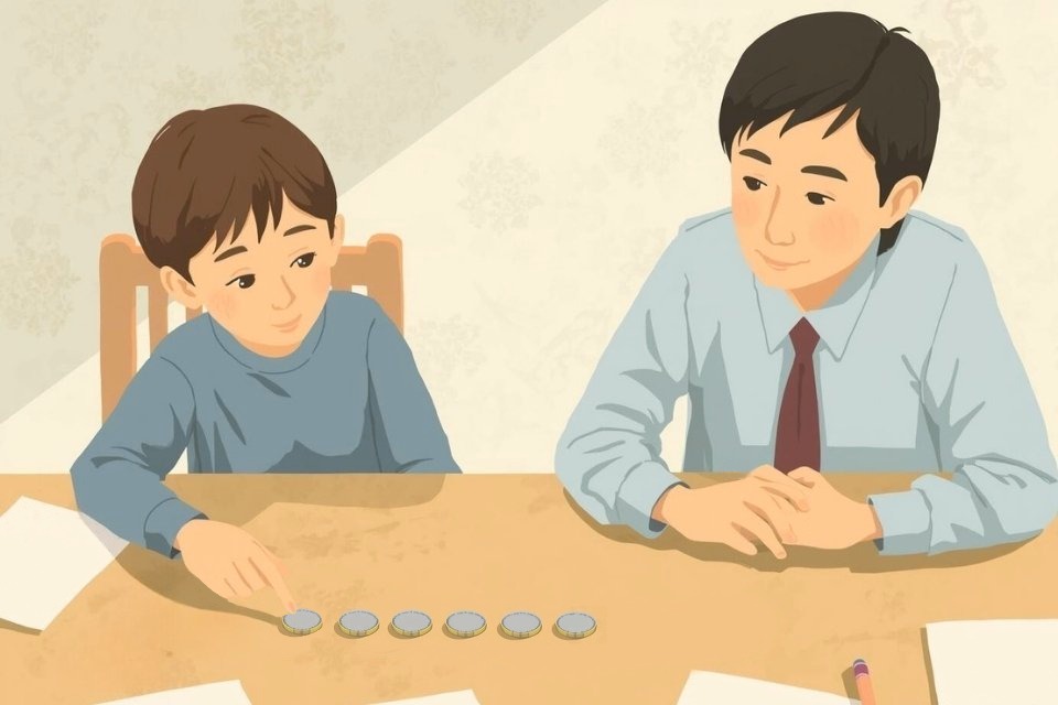 「100円玉+10円玉×2枚」「50円玉×2枚+10円玉×2枚」など、いくつかのパターンを自分で見つけてもらうと、少しずつ表情がほぐれてきます。